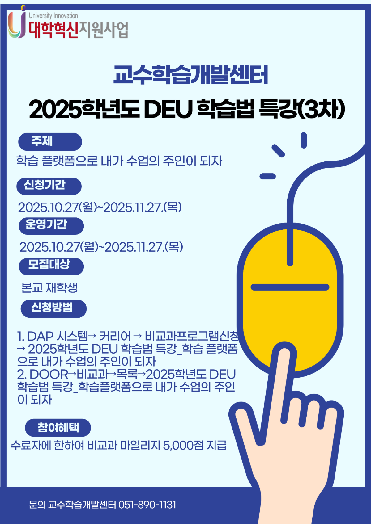 다. 문의: ☏051-890-1131, 15893@deu.ac.kr