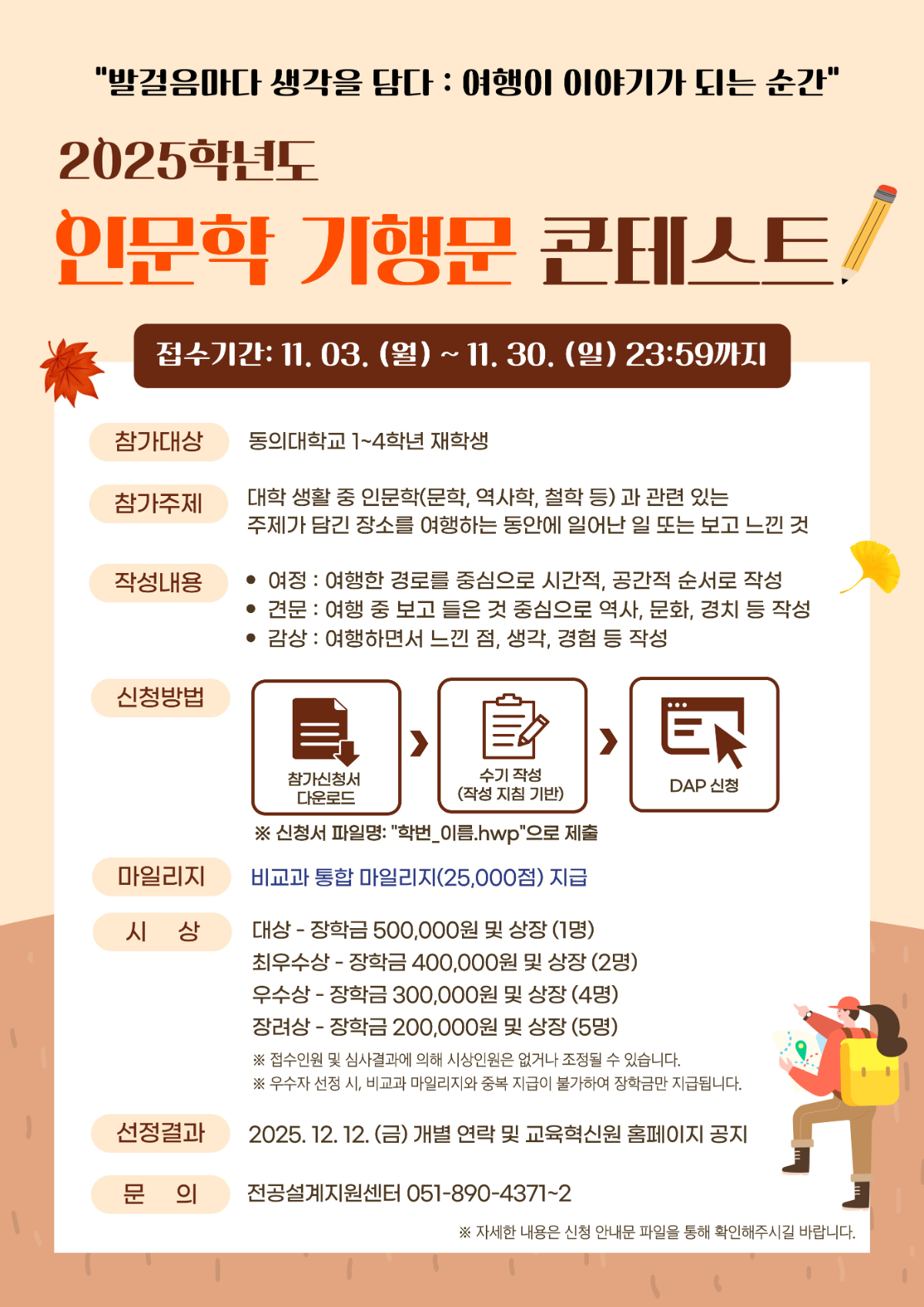 [안내][대학혁신지원사업]2025학년도 인문학 기행문 콘테스트 개최 안내